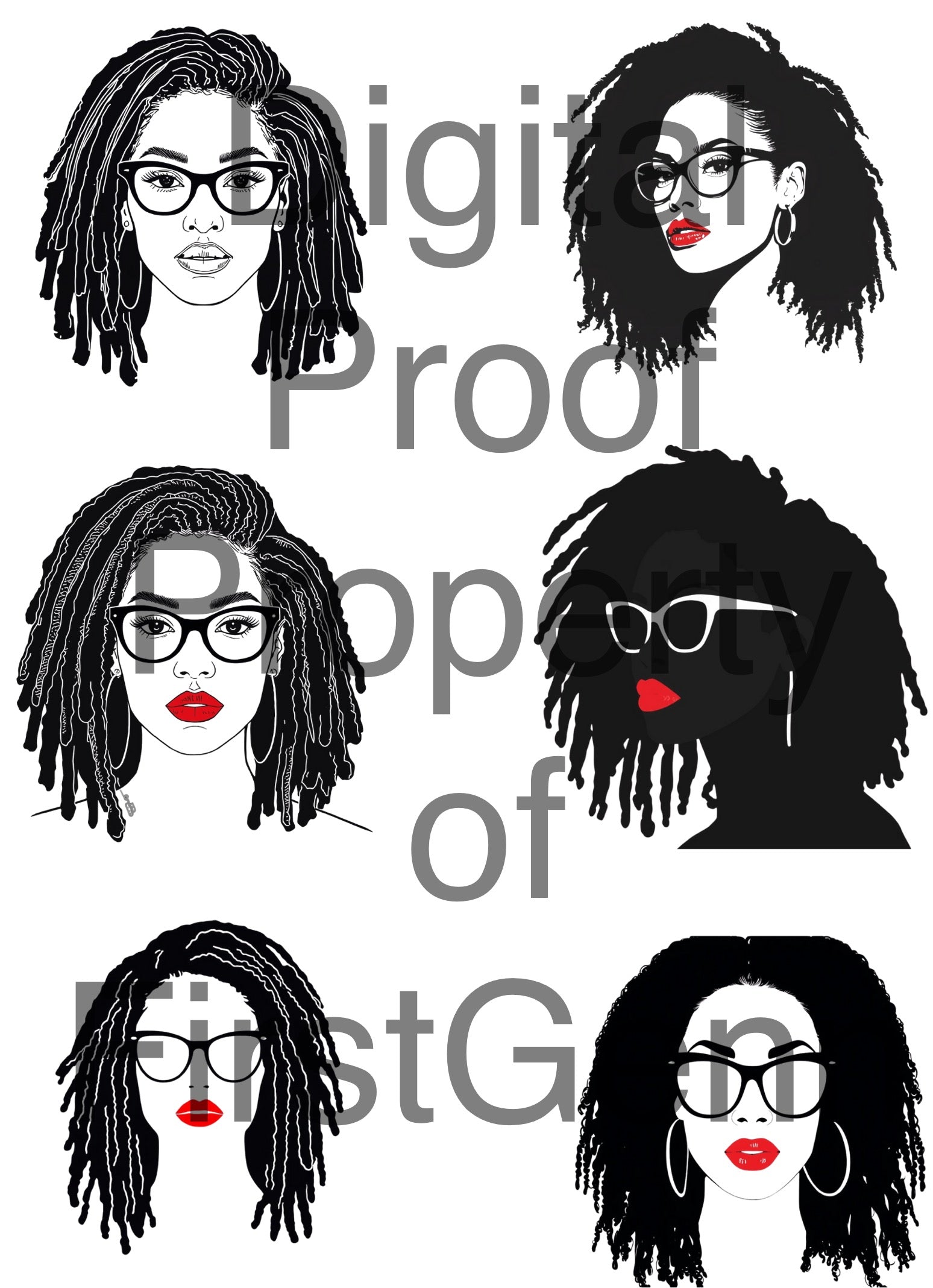 Black Women Silhouettes & Line Art – Dreadlocks, Glasses & Red Lipstick | Digital Download Bundle