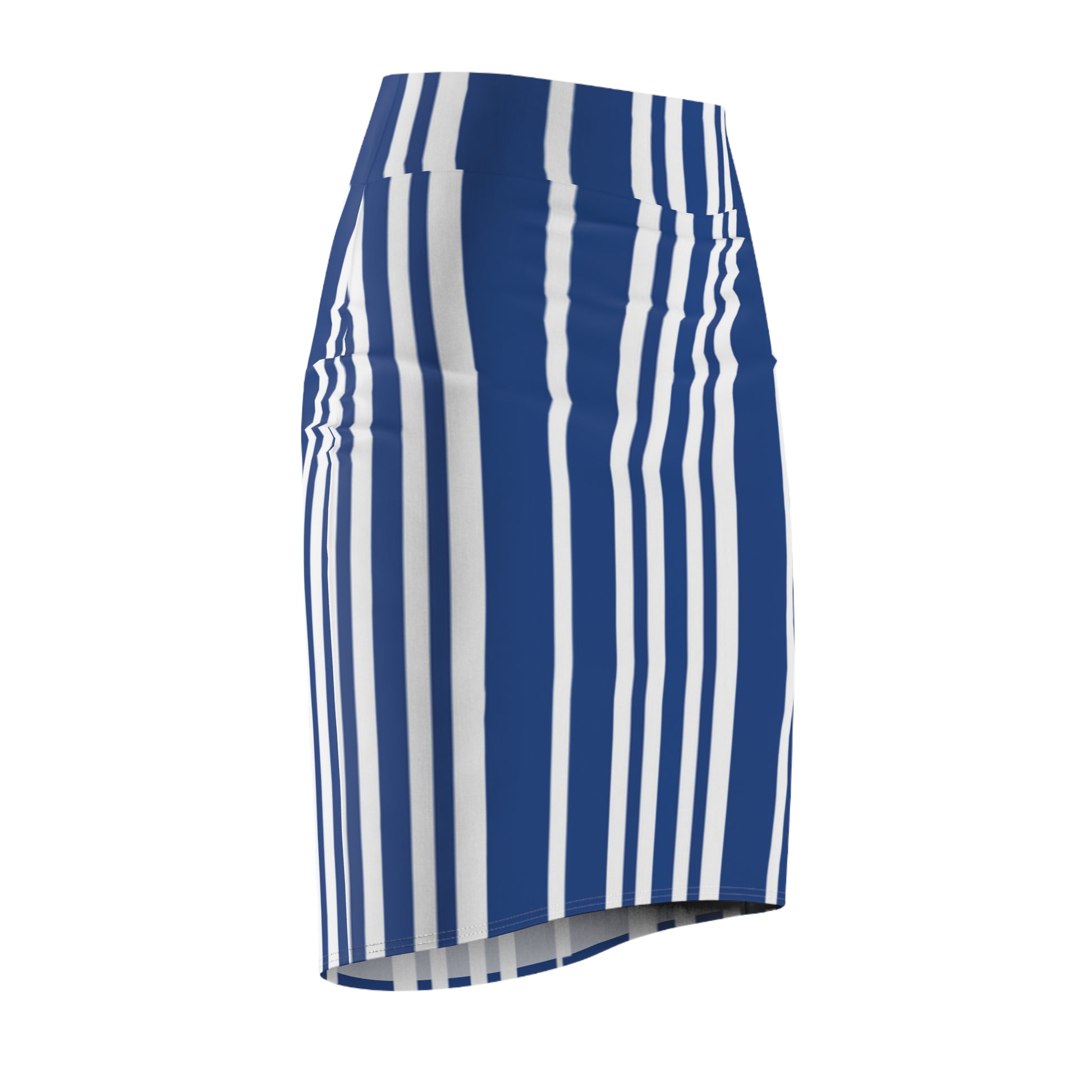 This blue and white striped pencil skirt is a stylish and versatile addition to any woman's wardrobe. The 4-way stretch fabric provides comfort and flexibility, making it perfect for both work and casual outings. The mid waist fit flatters the figure, giving a chic and fashionable look. Ideal for women who love to add a pop of color and pattern to their outfits, this skirt is perfect for summer parties, beach gatherings, and everyday wear. Product features - 95% Polyester 5% Spandex for strength and stretch - Flatlock stitching for seamless seams - Roll to roll all-over printing for vibrant colors - 4-way stretch for freedom of movement - Printed care label and assembled in the USA Care instructions - Line dry - Hand wash