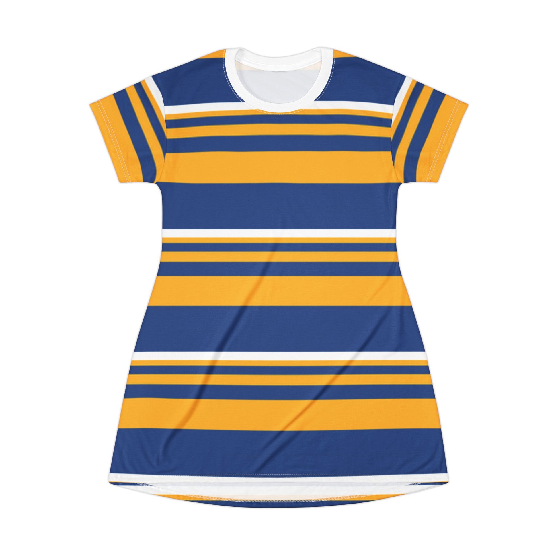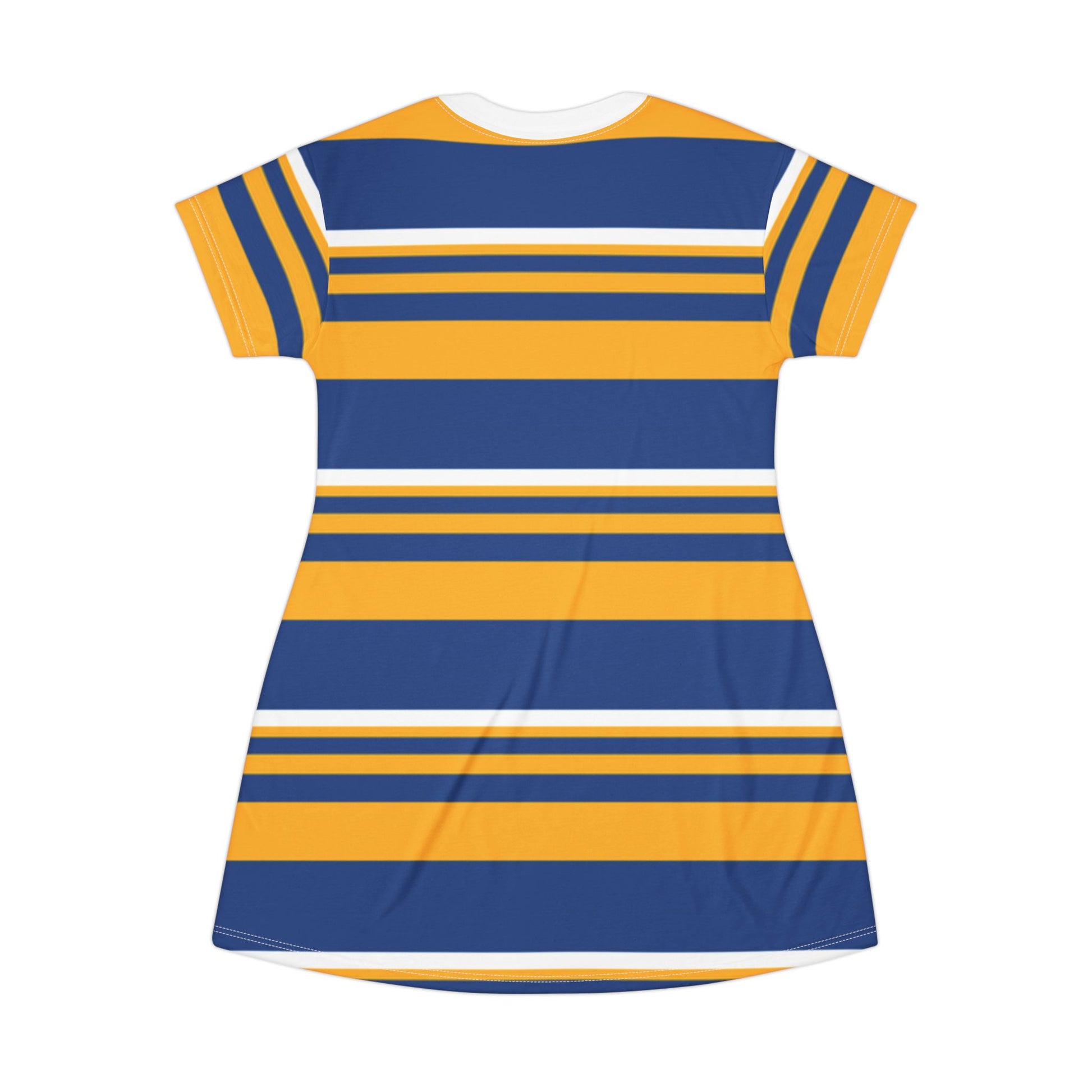Blue & Gold Stylish Striped T-Shirt Dress for Casual Outings | Perfect for Summer, Sports Events, Parties, Gifts