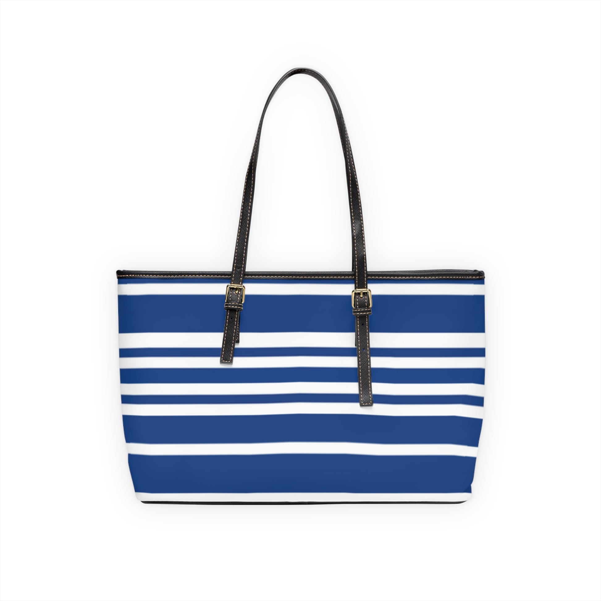 Blue Striped PU Leather Shoulder Bag: Chic Everyday Tote