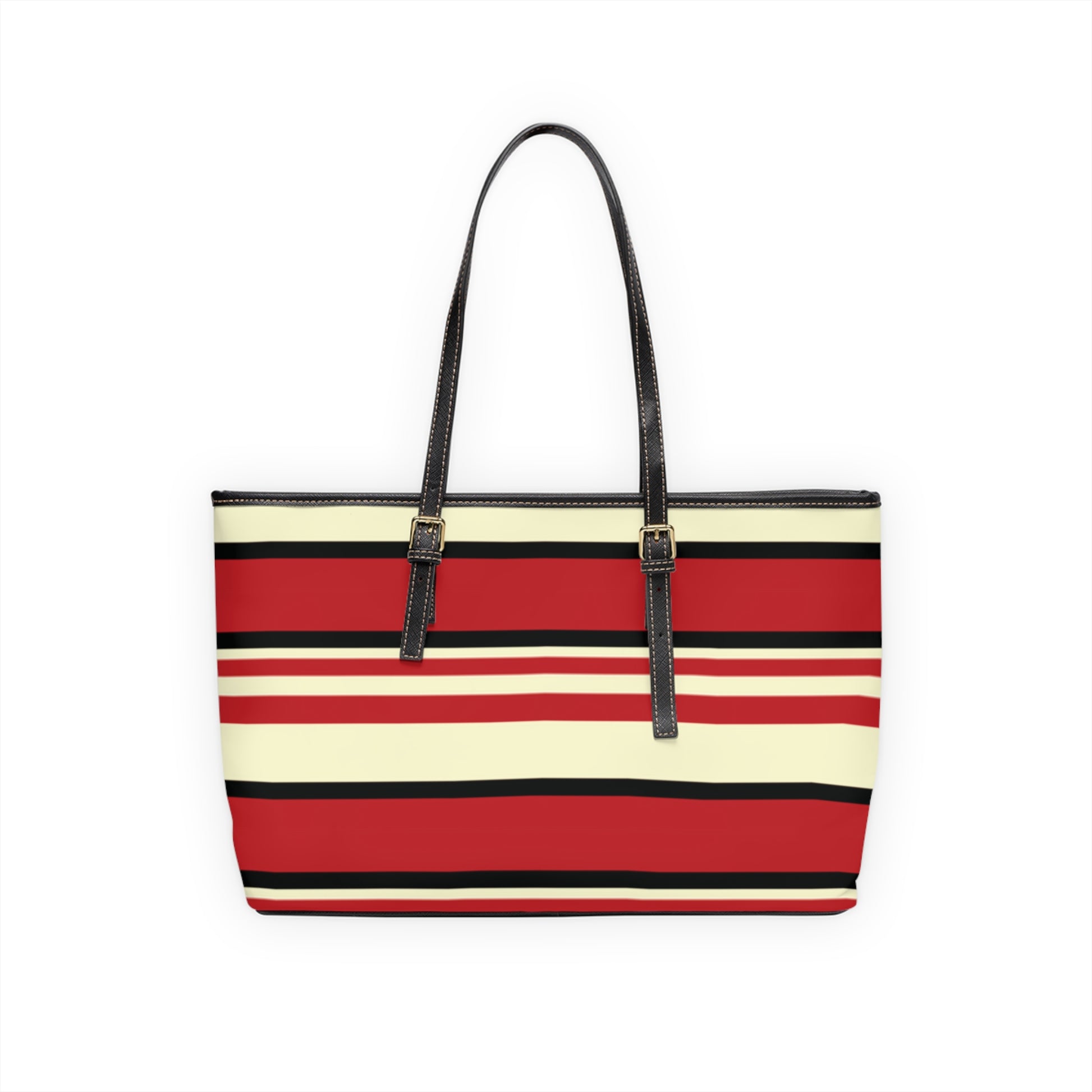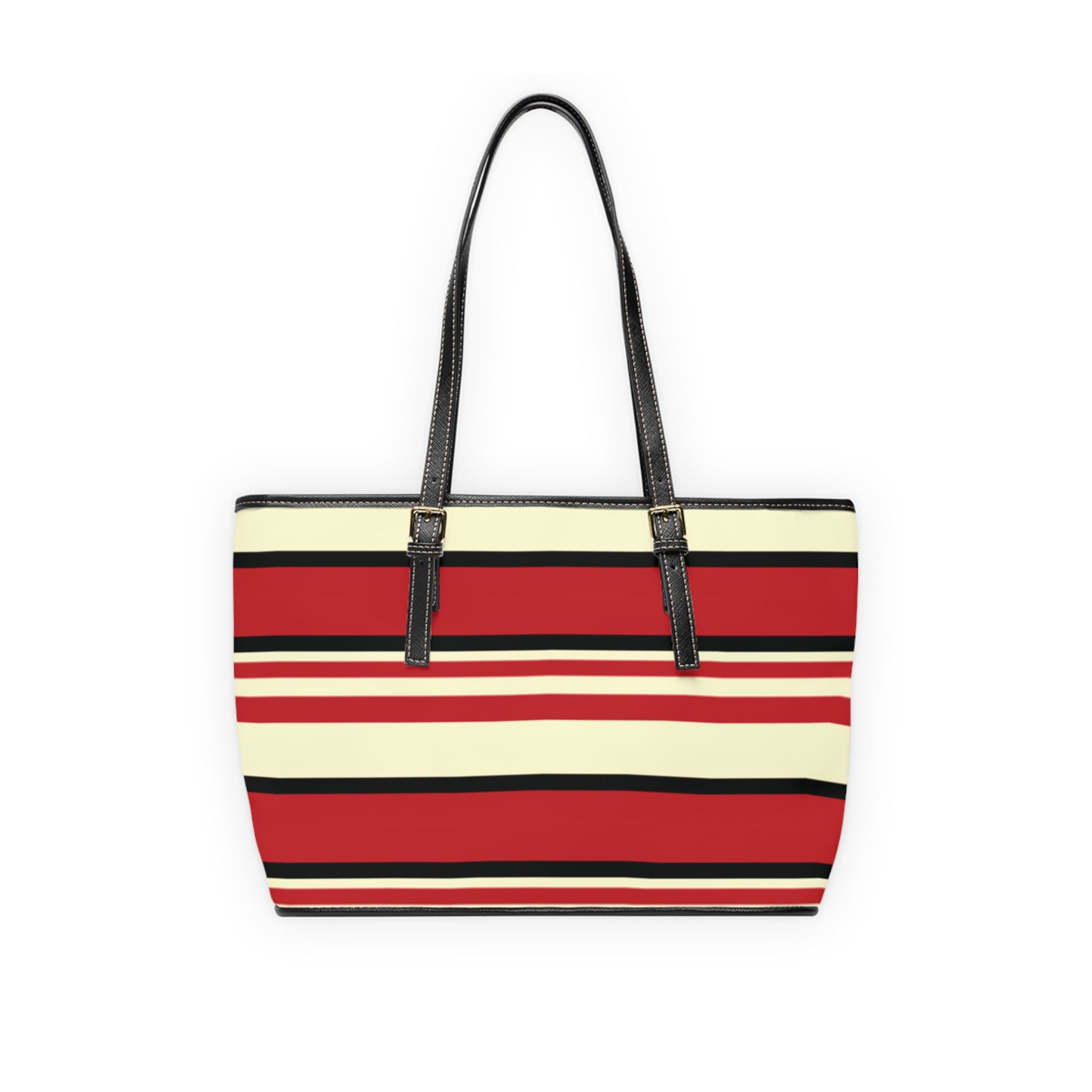 Crimson Striped PU Leather Shoulder Bag: Trendy Everyday Tote