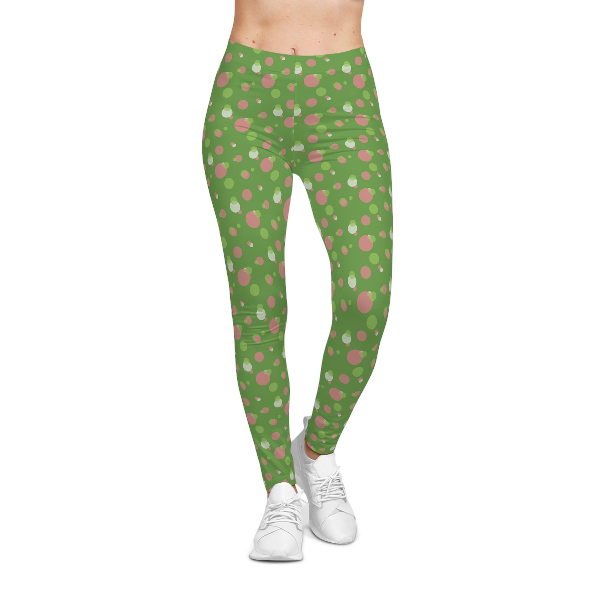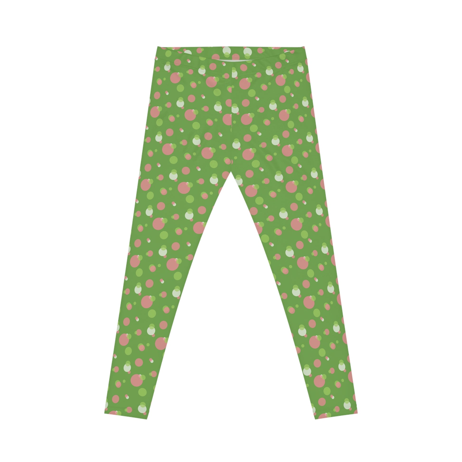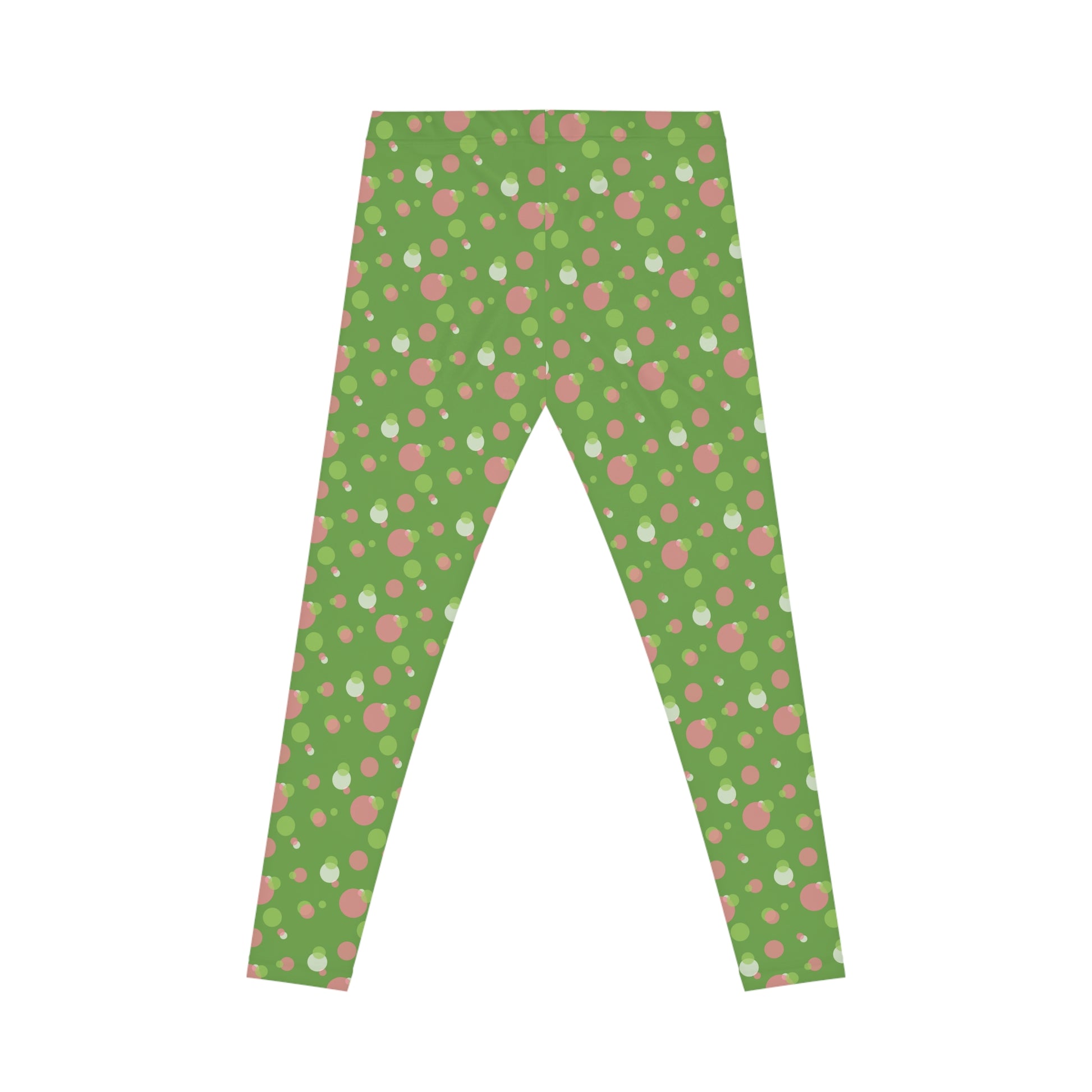 Green Background Polka Dot Leggings, Women's Leggings, Casual Pants, Pink and Green Leggings, Bold Patterned Tights