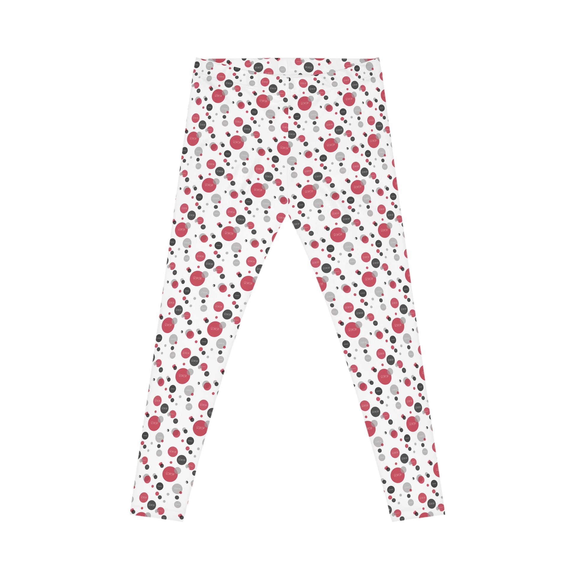 Bold leggings with red and black dots, giving a fun and vibrant look. Perfect for women who like to stand out with their outfits. Relevant for everyday wear, fitness enthusiasts, and those who enjoy colorful fashion. Ideal for everyday fun and casual gatherings.